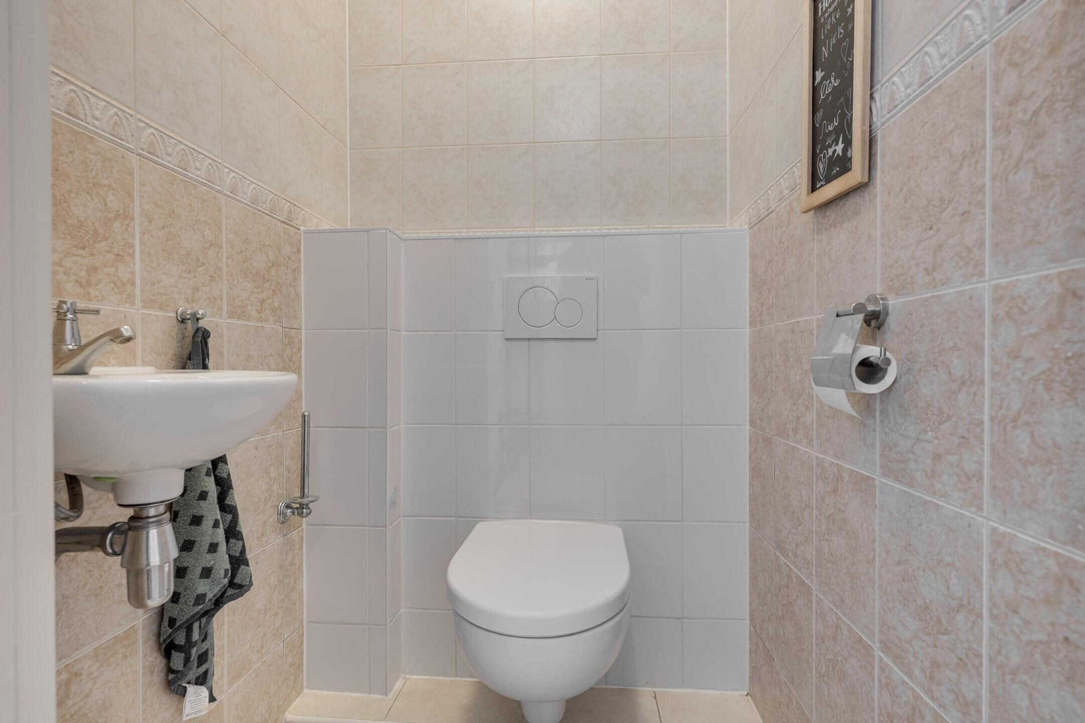 De badkamer is netjes uitgevoerd en voorzien van een douche, een wastafel met meubel en een aansluiting voor de wasmachine. Daarnaast is er een separaat toilet aanwezig. In het appartement is tevens een ruim opberghok aanwezig, ideaal voor extra bergruimte.