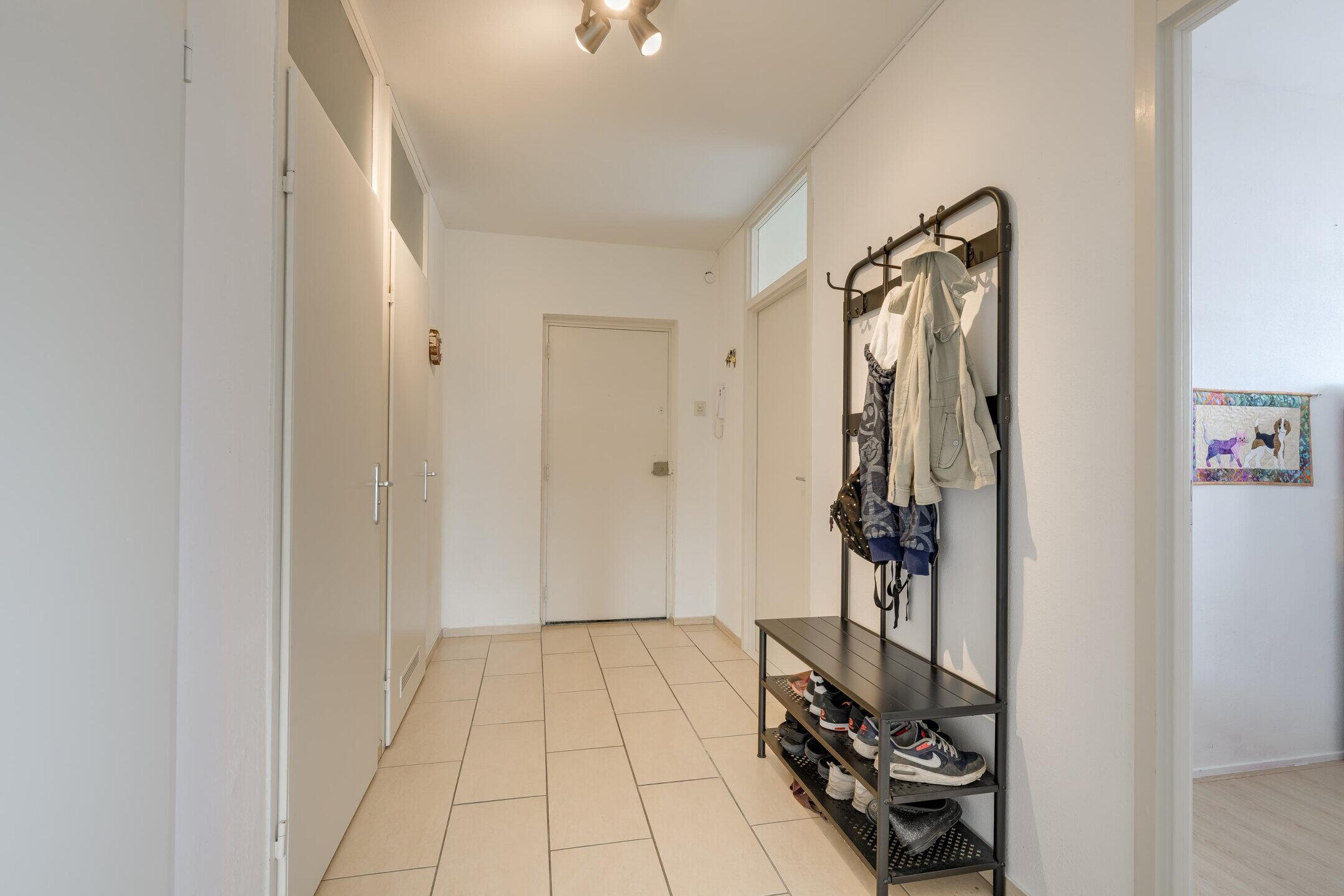Bij binnenkomst in het appartement komt u in de hal, vanwaar de woonkamer, de slaapkamers, de badkamer en het separate toilet toegankelijk zijn.
