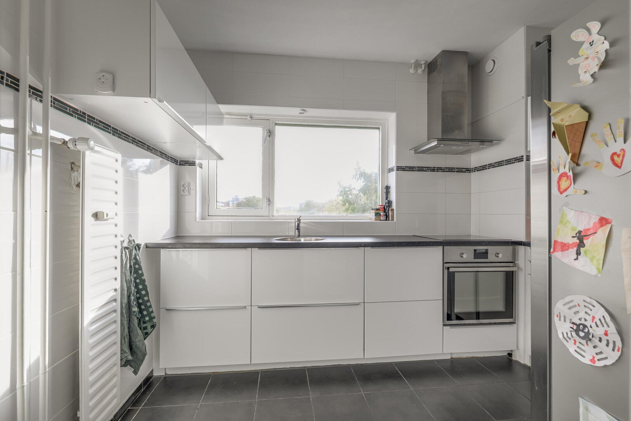 De keuken is praktisch ingericht en voorzien van een oven, vaatwasser en inductiekookplaat. De keuken is netjes onderhouden en biedt voldoende werk- en kastruimte voor dagelijks gebruik.