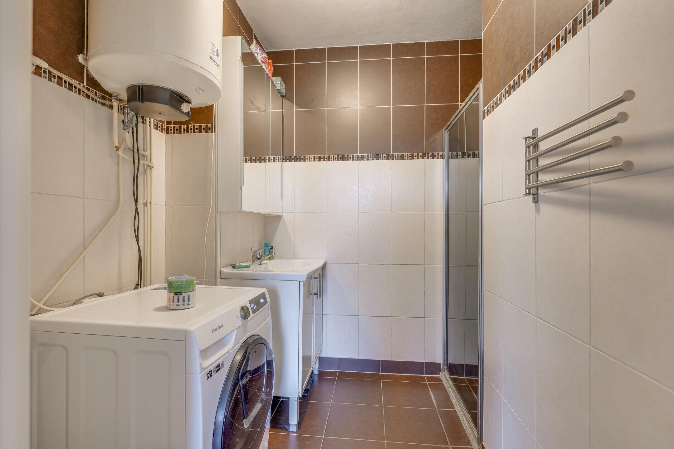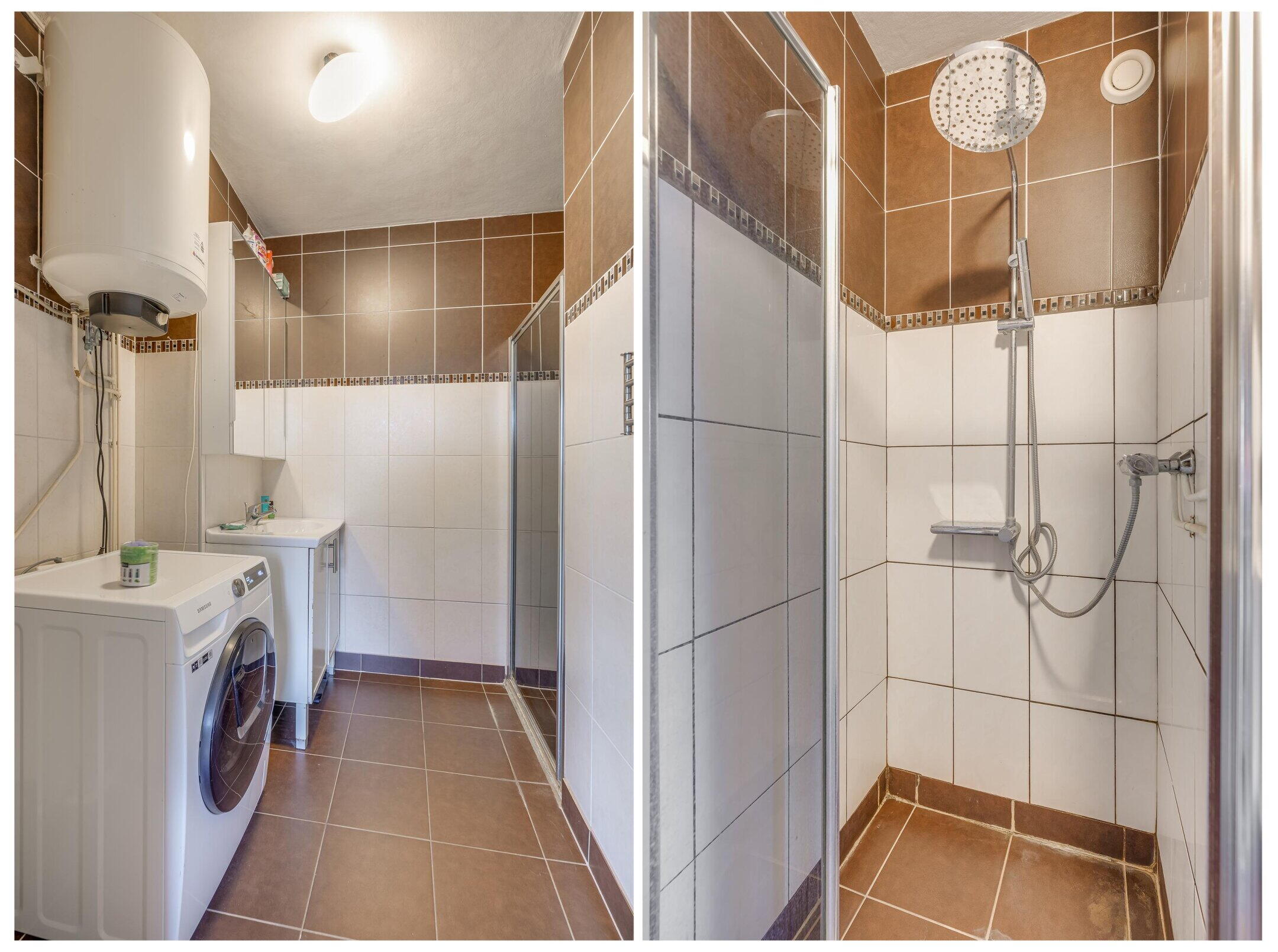 - Douche, wastafel, wastafelmeubel, wasmachineaansluiting