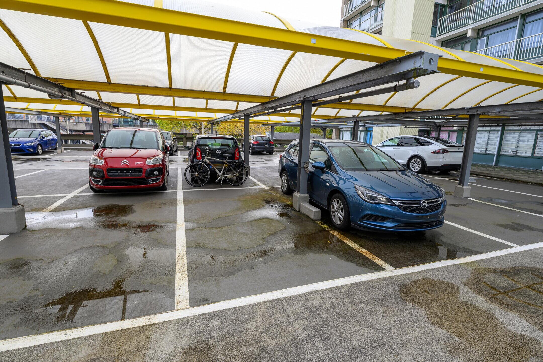 - Eigen parkeerplaats (carport) op het afgesloten parkeerdek achter;