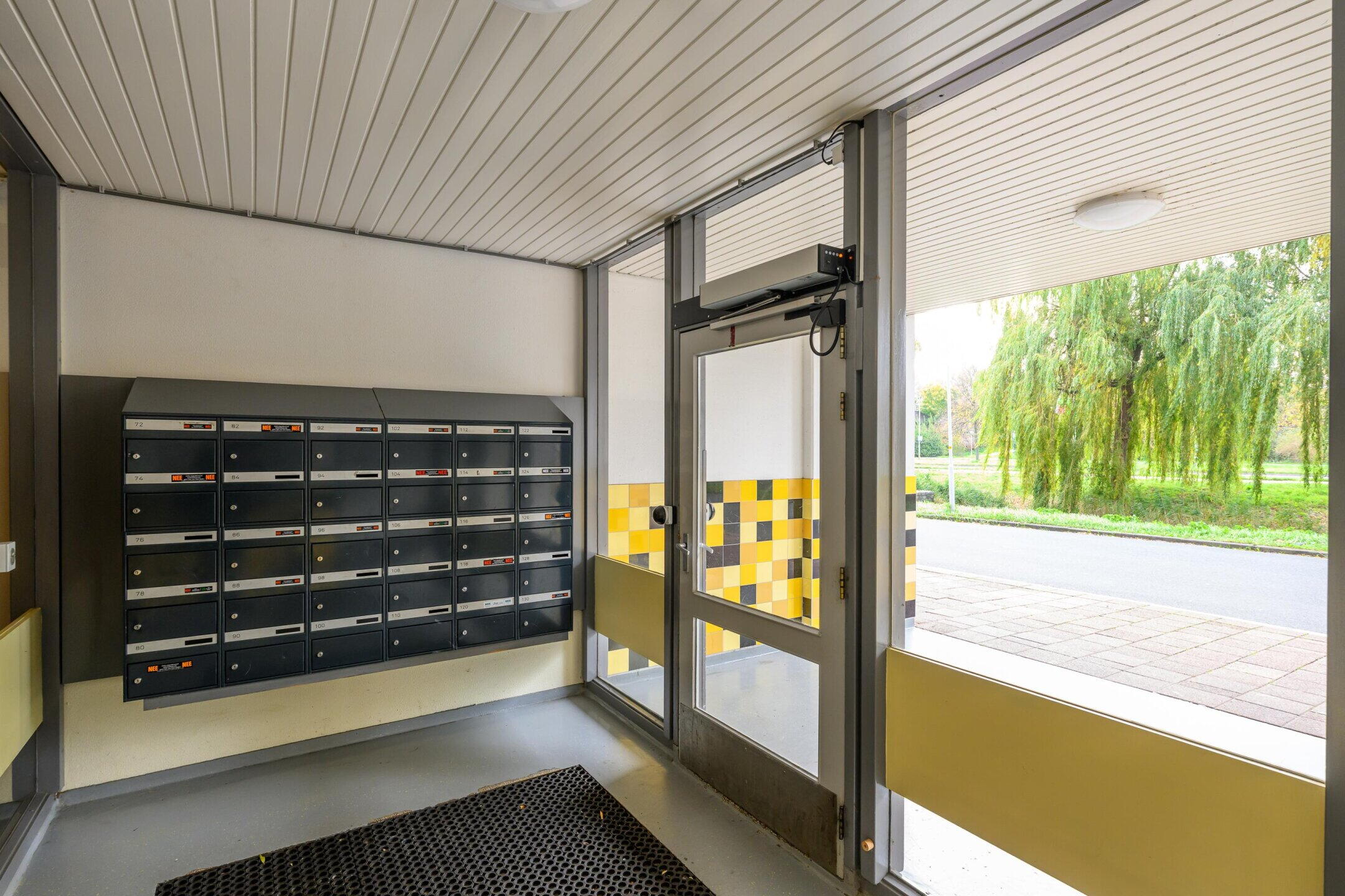 Centrale entree met intercom, trap en lift waarmee de verdiepingen bereikbaar zijn. Op de begane grond bevind zich ook de berging, geschikt voor het opstallen van fietsen of eventuele extra bergruimte.